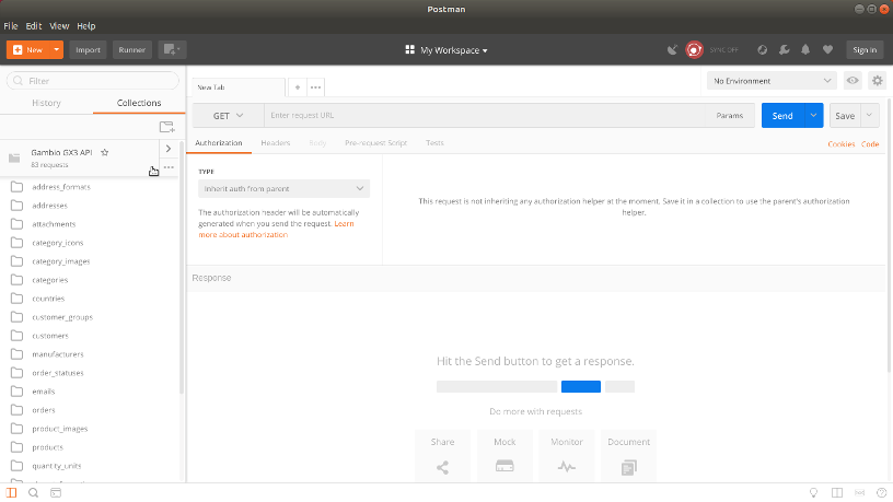 Once the API's swagger.json was imported into postman, you will have a Postman collection called Gambio GX3 API available,